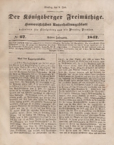 | 1847-06-08, Der Königsberger Freimüthige, Nr. 67 Dienstag, 8 Juni 1847 | 13 gru 2018 |