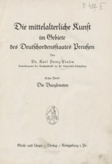 Sztuka średniowieczna na terenie państwa zakonnego w Prusach; T. 1 dotyczący architektury zamków krzyżackich. Książka zawiera 115 ilustracji w tekście oraz 31 planów. Publikacja z serii „Ostpreußische Landeskunde in Einzeldarstellungen” („Krajoznawstwo Prus Wschodnich w pojedynczych przedstawieniach”).