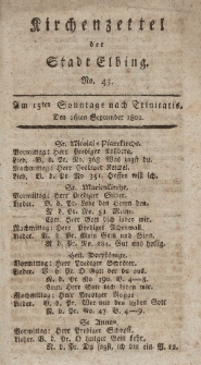 | 1802-09-26, Kirchenzettel der Stadt Elbing, Nr. 43, 26 September 1802 | Jan 7, 2019 |