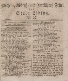 | 1827-06-10, Kirchenzettel der Stadt Elbing, Nr. 27, 10 Juni 1827 | 8 sty 2019 |