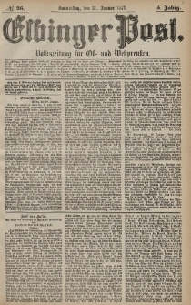 | 1878-01-31, Elbinger Post, Nr. 26 Donnerstag 31 Januar 1878, 5 Jahrg. | 7 lis 2018 |