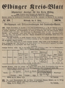 | 1878-03-06, Kreis-Blatt des Königlich Preußischen Landraths-Amtes zu Elbing, Nr. 19 Mittwoch 6 März 1878 | Jan 2, 2019 |