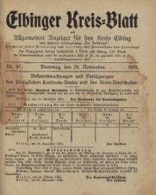 | 1905-11-28, Kreis-Blatt des Königlich Preußischen Landraths-Amtes zu Elbing, Nr. 97 Dienstag 28 November 1905 | Jan 3, 2019 |