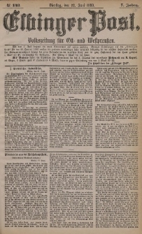 Tytuł: Elbinger Post, Nr. 143, Dienstag 22 Juni 1880, 7 Jahrg.