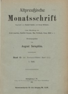 Tytuł: Altpreußische Monatsschrift, 1908, H. 1, Bd. 45