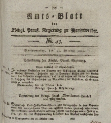 | 1822-10-25, Amts-Blatt der Königl. Preuß. Regierung zu Marienwerder, 25. Oktober 1822, No. 43. | Dec 20, 2018 |