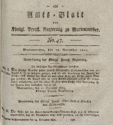 | 1822-11-22, Amts-Blatt der Königl. Preuß. Regierung zu Marienwerder, 22. November 1822, No. 47. | 20 gru 2018 |