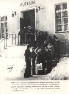 Autor zdjęcia : W. Amerski, W : Miesięczna Kronika Fotograficzna : województwo elbląskie – marzec – 1979 r. (Nr 3/79). Gdańsk, Wydaw. : Krajowa Agencja Wydawnicza. Redaktor wydania : W. Amerski. Format : 21 x 28 cm. W 34 rocznicę wyzwolenia Elbląga miejscowe muzeum zorganizowało dla młodzieży szkolnej specjalną projekcję filmu dokumentalnego o zniszczeniach wojennych i odbudowie miasta. Zdjęcie prezentuje klasę VIIa ze Szkoły Podstawowej Nr 19 wraz ze swoją wychowawczynią Haliną Wańkowicz, która w ramach godzin wychowawczych odwiedziła muzeum.