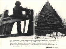 Autor zdjęcia : W. Amerski, W : Miesięczna Kronika Fotograficzna : województwo elbląskie – kwiecień – 1979 r. (Nr 4/79). Gdańsk, Wydaw. : Krajowa Agencja Wydawnicza. Redaktor wydania : W. Amerski. Format : 28 x 21 cm.Zdjęcie prezentuje ustawianie drewnianego rusztowania na ścianie południowej przez pracowników elbląskiego PKZ – Brunona Romanowskiego i Adama Uzarewicza. Prace związane były z kapitalnym remontem budynku, byłego kościoła podominikańskiego, będącego siedzibą Galerii EL. Przewidziany termin zakończenia prac planowany był na rok 1980.