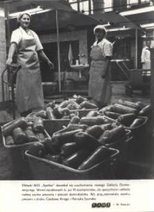 Autor zdjęcia : W. Amerski, W : Miesięczna Kronika Fotograficzna : województwo elbląskie – styczeń – 1979 r. (Nr 1/79). Gdańsk, Wydaw. : Krajowa Agencja Wydawnicza. Format : 21 x 28 cm. Elbląski WSS „Społem” uruchomił nowy Zakład Garmażeryjny, który wyrabiał 70 asortymentów. Specjalnością była szynka pieczona i pieczeń dominikańska. Na zdjęciu przy stanowisku wyrobu pieczeni z drobiu : Czesława Kiraga i Henryka Szumska.