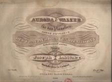 Zapis nutowy na fortepian „Aurora –Walzer” Josepha Labitzky’ego (1802–1881) - czeskiego kompozytora, skrzypka i dyrygenta. Zeszyt z nutami pochodzi z kolekcji Henryka Nitschmanna, znawcy literatury polskiej, kompozytora i krytyka muzycznego. Druk w formacie 24 x 32,5 cm, współoprawny z innymi drukami muzycznymi (Muz. V 40-55).