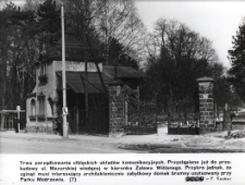 Fotoautor: P. Kajmer , in: Monatliche Photographische Chronik; Elbinger Woiwodschaft – April – 1978 (Nr 4/78), Danzig, Hrsg. Krajowa Agencja Wydawnicza. Format 24 x 18 cm. Das Foto zeigt ein sich im „Modrzewie“- Park befindendes Torhäuschen aus der Vorkriegszeit, das wegen des Umbaus der Mazurska-Straße um einige zig Meter verlegt werden musste.
