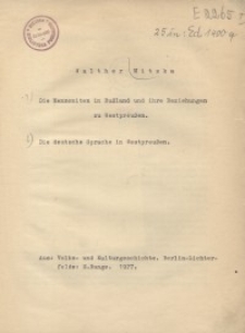 Tytuł: Die Mennoniten in Rußland und ihre Beziehungen zu Westpreußen ; Die Deutschen Sprache in Westpreussen