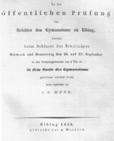 Tytuł: Zu der öffentlichen Prüfung der Schüler des Gymnasiums zu Elbing...