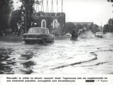 Autor zdjęcia : P. Kajmer, W : Miesięczna Kronika Fotograficzna : województwo elbląskie –wrzesień – 1978 r. (Nr 9/78). Gdańsk, Wydaw. : Krajowa Agencja Wydawnicza. Format: 24 x 18 cm. Zdjęcie prezentuje widok miasta Elbląga po obfitych opadach deszczu.