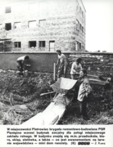 Autor zdjęcia : Z. Kusaj, W : Miesięczna Kronika Fotograficzna : województwo elbląskie – październik – 1978 r. (Nr 10/78). Gdańsk, Wydaw. : Krajowa Agencja Wydawnicza. Format: 18 x 24 cm. Piotrowiec (niem. Peterswalde) – wieś w Polsce położona w województwie warmińsko-mazurskim, w powiecie braniewskim, w gminie Pieniężno. W tej miejscowości brygada remontowo-budowlana PGR Pieniężno wznosi budynek socjalny dla załogi miejscowego zakładu rolnego. W budynku ma powstać m.in. przedszkole, sklep, stołówka a także „mini dom rencisty”.
