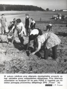 Fotoautor: P. Kajmer, in: Monatliche Photographische Chronik, Elbinger Woiwodschaft, November – 1978 (Nr. 11/78). Danzig, Hrsg. Krajowa Agencja Wydawnicza, Format 18x24cm.Auf dem Foto ist Kartoffelhacken im Dorf Langenau (Gemeinde Freystadt in Westpreußen) abgebildet, bei denen die Bauern von den Belegschaften der Elbinger Betriebe unterstützt wurden.