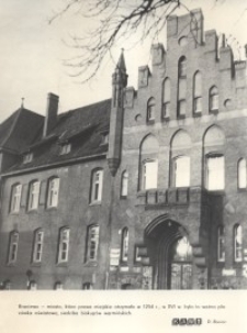 Autor zdjęcia : D. Bocian, W: Miesięczna Kronika Fotograficzna : województwo elbląskie – styczeń – 1980 r. (Nr 1/80). Gdańsk, Wydaw.: Krajowa Agencja Wydawnicza. Redaktor wydania: U. Kaniewska. Format: 18 x 24 cm. Braniewo (niem. Braunsberg) powstało ok. 1240 r. i jest najstarszym miastem warmińskim. Położone na obu brzegach rzeki Pasłęki, w pobliżu ujścia do Zalewu Wiślanego.
