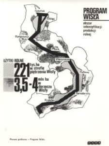 Miesięczna Kronika Fotograficzna : województwo elbląskie – maj – 1980 r. (Nr 5/80). Gdańsk, Wydaw.: Krajowa Agencja Wydawnicza. Redaktor wydania: E. Pawłowski. Format: 18 x 24 cm.. Program Wisła z 1980 roku zakładał m. in : modernizację transportu rzecznego, regulację rzek i potoków górskich, przewidywał budowę i modernizację wałów, budowę zbiorników retencyjnych z rezerwą powodziową oraz zmniejszenie zagrożenia powodziowego (etc). Prezentowana plansza graficzna „Program Wisła” przedstawia obszar intensyfikacji produkcji rolnej.