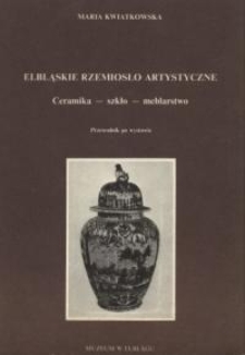 Wystawa ceramiki, szkła i mebli prezentuje zespół zabytków pochodzących głównie z kolekcji Muzeum w Elblągu, a jedynie w niewielkim stopniu jest uzupełniona obiektami pochodzącymi z innych zbiorów. Jednym z jej zadań jest zapoznanie zwiedzających z dorobkiem elbląskiego rzemiosła cechowego. Pokazane na wystawie zabytki są przeważnie przedmiotami codziennego użytku o dobrej jakości technicznej i wysokich walorach estetycznych, przez co zasługują na miano wyrobów rzemiosła artystycznego. Świadczą one o gustach mieszczan z jednej strony - z drugiej zaś o możliwościach i umiejętnościach rzemieślników elbląskich. Wystawa stwarza w znacznym stopniu obraz zagospodarowania wnętrza domu mieszczańskiego, dając wyobrażenie o życiu codziennym mieszczan, obyczajowości i kulturze w XVII i XVIII wieku. Przewodnik omawia ceramikę, kaflarstwo, naczynia, fajanse, flizy, szkło oraz meble elbląskie. Na końcu tekstu umieszczono 29 ilustracji.