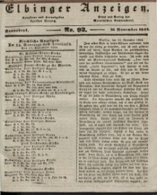 | 1844-11-16, Elbinger Anzeigen, Nr. 92. Sonnabend, 16. November 1844 | 23 maj 2025 |