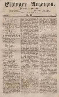 | 1854-04-29, Elbinger Anzeigen, Nr. 35. Sonnabend, 29. April 1854 | 23 maj 2025 |