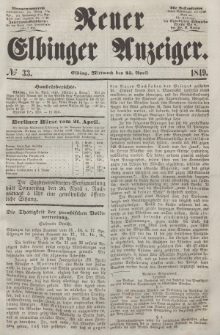 | 1849-04-25, Neuer Elbinger Anzeiger, Nr. 33. Mittwoch, 25. April 1849 | Jan 3, 2019 |