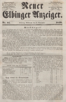 Tytuł: Neuer Elbinger Anzeiger, Nr. 91. Mittwoch, 14. November 1849