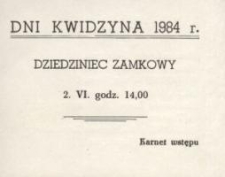 Tytuł: Dni Kwidzyna: 2-10 czerwca 1984 r. – karnet wstępu