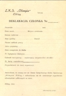 Tytuł: Z.K.S. „Olimpia” Elbląg – deklaracja członkowska