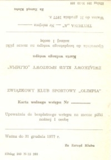 | 1977, Z.K.S. „Olimpia” Elbląg - karta wolnego wstępu | Oct 11, 2018 |