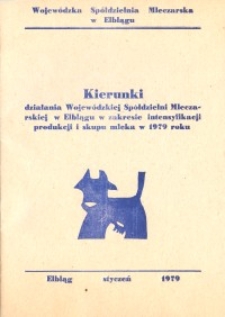 Wojewódzka Spółdzielnia Mleczarska w Elblągu wydała w styczniu 1979 r. broszurę - Kierunki Działania Wojewódzkiej Spółdzielni Mleczarskiej w Elblągu w zakresie intensyfikacji produkcji i skupu mleka w 1979. W części I broszury przedstawiono działania mające na celu intensyfikację produkcji m. in. poprzez coraz lepszą współpracę z lokalnymi strukturami państwa, spółdzielniami rolniczymi różnych szczebli, instytucjami związanymi z hodowlą, weterynarią i rolnictwem. Zwiększenie produkcji miałoby nastąpić dzięki szerszemu dostępowi do pasz i upowszechnieniu racjonalnych metod żywienia, powiększeniu pogłowia bydła i jego produkcyjności, oddziaływaniu na poprawę warunków środowiskowych chowu bydła mlecznego oraz stanu zdrowotnego, zwiększenia mechanizacji przy obsłudze bydła, poprawę wartości i jakości higienicznej mleka, także poprzez doskonalenie organizacji skupu mleka i obsługi rolników. W dalszej części przedstawiono działania szczegółowe oraz tabele działań w poszczególnych gminach.