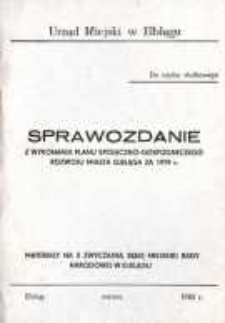 Urząd Miejski w Elblągu wydał biuletyn dotyczący wykonania planu społeczno-gospodarczego rozwoju miasta Elbląga za 1979 r. Sprawozdanie składa się z części ogólnej - wstępu w której zawarto treść sprawozdania oraz z części szczegółowej w której opisano poszczególne działy gospodarki miejskiej - 12. Dział 13 to czyny społeczne a dział 14 to wnioski i postulaty ludności. Do części opisowej dołączona jest wielostronicowa tablica syntetyczna. We wstępie znalazła się uwaga o utrudnionej realizacji zadań w 1979 r. spowodowanej ostrym atakiem zimy była to tzw. "zima stulecia 1978/1979". Zima ta według sprawozdania stała się głównym źródłem powstałych strat i opóźnień. Podstawowe zadania planu zostały wykonane bądź ich poziom jest zbliżony do wielkości planowanych. M. in. oddano w 1979 r. nowy budynek Wojewódzkiej Biblioteki Publicznej i Klub Międzynarodowej Prasy i Książki oraz przeprowadzono remont stadionu "Olimpia". Wypracowano dla miasta czyny społeczne o wartości 68 mln złotych a większość pracy wykonano w "Czynie 35-lecia PRL" i powszechnym czynie partyjnym. Na stronie tytułowej jest informacja - do użytku służbowego oraz materiały na X zwyczajną sesję Miejskiej Rady Narodowej w Elblągu.