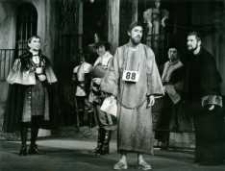 Dramat z 1952 r. amerykańskiego autora Arthura Millera (1915-2005), oparty na procesach o czary, które rozegrały się w 1692 r. w miasteczku Salem. Sztuka miała premierę światową na Broadwayu w 1953 roku i zdobyła nagrodę Tony za najlepszą sztukę roku. Dramat jest alegoryczną odpowiedzią na makkartyzm, szalejący w USA, zapoczątkowany przez republikańskiego senatora J.R. McCarthy’ego w 1950 r.Teatr im. Stefana Jaracza miał swoją premierę 11.02.1970 r. w Elblągu. Przekład – Wacława Komarnicka i Krystyna Tarnowska, reżyseria – Jerzy Wróblewski, scenografia – Liliana Jankowska, opracowanie muzyczne – Włodzimierz Jarmołowicz. Na zdjęciu kadr ze spektaklu.