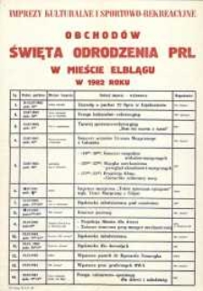 | 1982, Imprezy Kulturalne i Sportowo-Rekreacyjne Obchodów Święta Odrodzenia PRL w mieście Elblągu w 1982 r. - afisz | 11 paź 2016 |