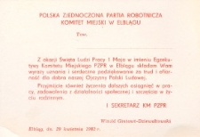 Tytuł: Obchody Święta Pracy w Elblągu w 1982 r. - kartka z życzeniami