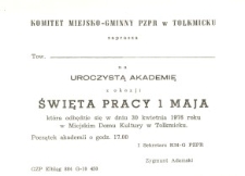 | 1976, Uroczysta Akademia z Okazji Święta Pracy w Tolkmicku 1976 r. - zaproszenie | Nov 8, 2016 |