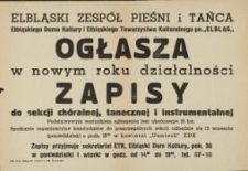 Tytuł: Elbląski Zespół Pieśni i Tańca "Elbląg"; Ogłasza Zapisy do Sekcji Chóralnej, Tanecznej i Instrumentalnej - afisz
