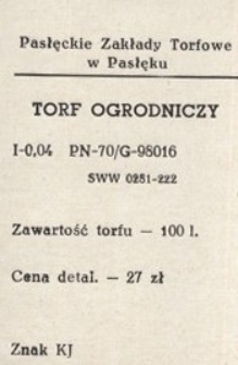 | XX w., Torf ogrodniczy (2) - etykieta towarowa zastępcza | Jun 28, 2017 |
