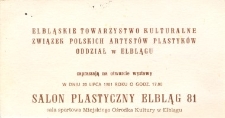 | 1981, Salon Plastyczny Elbląg 81 - Wystawa w Sali Sportowej Miejskiego Ośrodka Kultury w Elblągu w 1981 r. - zaproszenie | Jan 19, 2017 |