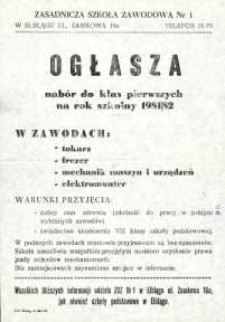 | 1981, Zasadnicza Szkoła Zawodowa Nr 1 w Elblągu ogłasza nabór na rok szkolny 1981/1982 - afisz | Mar 27, 2015 |