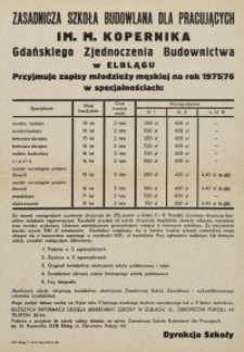 | 1975, Zasadnicza Szkoła Budowlana w Elblągu ogłasza nabór na rok szkolny 1975/1976 - afisz | 17 mar 2016 |