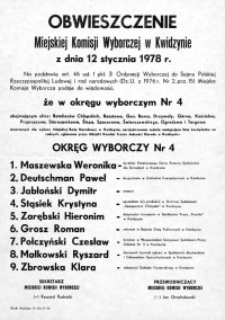 | 1978, Obwieszczenie Miejskiej Komisji Wyborczej w Kwidzynie 1978 r. - okręg wyborczy nr 4 - afisz | 11 paź 2018 |