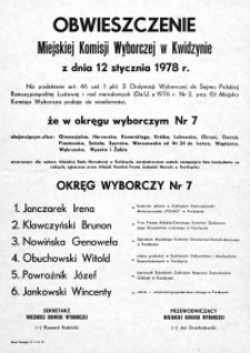 | 1978, Obwieszczenie Miejskiej Komisji Wyborczej w Kwidzynie 1978 r. - okręg wyborczy nr 7 - afisz | 11 paź 2018 |