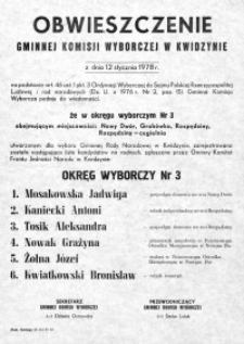 | 1978, Obwieszczenie Gminnej Komisji Wyborczej w Kwidzynie 1978 r. - okręg wyborczy nr 3 - afisz | 11 paź 2018 |
