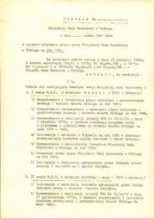 Urząd Miejski w Elblągu wydał w 1981 r. druk - Uchwała Nr .... Miejskiej Rady Narodowej w Elblągu z 03.1981 r. w sprawie ustalenia planu pracy Miejskiej Rady Narodowej (MRN) na rok 1981. Na podstawie art. 22 ustawy z dnia 25.01.1958 r. o radach narodowych MRN uchwaliła tematykę 5 sesji MRN mających się odbyć w określonych terminach od miesiąca marca. W dokumencie zobowiązuje się - Prezydenta Miasta Elbląga do zapewnienia opracowania i złożenia odpowiednich materiałów na sesję w terminach określonych w harmonogramach prac przygotowawczych do sesji MRN. A Komisje Miejskiej Rady do przeprowadzenia badań i analiz zagadnień zaplanowanych do rozpatrzenia na sesjach MRN, także do wykorzystywania w swojej pracy wyników kontroli resortowych oraz organów kontroli państwowej. W dokumencie wymieniono przy tym zagadnienia szczególnie istotne, do których Komisje powinny się dobrze przygotować. Radnych MRN zobowiązano do udziału w spotkaniach z wyborcami, zasięganiu opinii społeczeństwa w sprawach stanowiących tematykę sesji MRN oraz włączanie społeczeństwa do udziału w realizacji zadań uchwalonych przez Radę. Dokument zobowiązywał też Prezydium MRN do przygotowania sesji MRN, uwzględnienia w swej działalności tematyki wynikającej z tego planu pracy oraz działalności i zapewnienie pomocy samorządom mieszkańców przez Prezydenta miasta. Do koordynowania działalności Komisji MRN i ustalenia wytycznych do pracy Miejskiego Komitetu Kontroli Społecznej. Ponadto Prezydium zobowiązane zostaje do złożenia Radzie za okres roczny informacji o swojej działalności. W końcowej części dokumentu Prezydium upoważnia do wprowadzenia zmian w ustalonej tematyce sesji pod warunkiem, iż są one podyktowane aktualnymi potrzebami krajowymi i lokalnymi. Uchwała miała wejść w życie zgodnie z dniem jej podjęcia. Pod dokumentem wydrukowano imię i nazwisko długoletniego Przewodniczącego Miejskiej Rady Narodowej w Elblągu Medarda Riefa. To jeszcze jeden dokument o nazwie "Uchwała Miejskiej Rady Narodowej w Elblągu z .....r. w Sprawie Ustalenia Planu Pracy Miejskiej Rady Narodowej na Rok ....." z pośród kilku innych, które można przejrzeć a znajdujących się w zbiorach Dokumentów Życia Społecznego Biblioteki Elbląskiej.