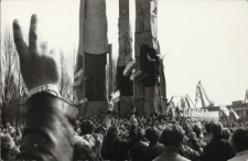 Biblioteka Elbląska w swoich zbiorach Dokumentów Życia Społecznego posiada różne kolekcje zdjęć, m.in. z obchodów, uroczystości, spotkań autorskich, wystaw oraz innych ważnych wydarzeń, mających miejsce w regionie elbląskim.Jedna z kolekcji to zdjęcia prezentujące demonstracje w stanie wojennym, wiece i spotkania pod Pomnikiem Poległych Stoczniowców w Gdańsku, zdjęcia przedstawiające demonstracje i przemówienia Lecha Wałęsy. Nadzwyczajny stan wprowadzony 13.12.1981 r. – tzw. stan wojenny spowodował iż na terenie całej Polski organizowano różnego typu akcje świadczące o negatywnym nastawieniu do stanu wojennego, m.in. tworzono ręcznie plakaty, drukowano ulotki, a także manifestowano na ulicach polskich miast.Prezentowane dokumenty pochodzą z archiwum przekazanego w darze Bibliotece Elbląskiej przez NSZZ „Solidarność” Elbląg.