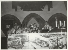 Msza Święta w elbląskiej Katedrze św. Mikołaja. Wśród prowadzących uroczystą mszę, m. in.: ksiądz Infułat Mieczysław Józefczyk oraz prymas Józef Glemp.