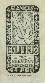 | XX w., Kosyrczyk Klemens, Exlibris : X Klemens Kosyrczyk-Sancte Francisce Salesi- Ora pro me | 18 sty 2016 |