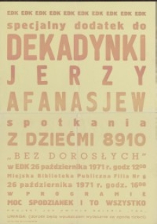 | 1971, Dekadynki - Spotkanie z Jerzym Afanasjewem - afisz | 15 kwi 2016 |